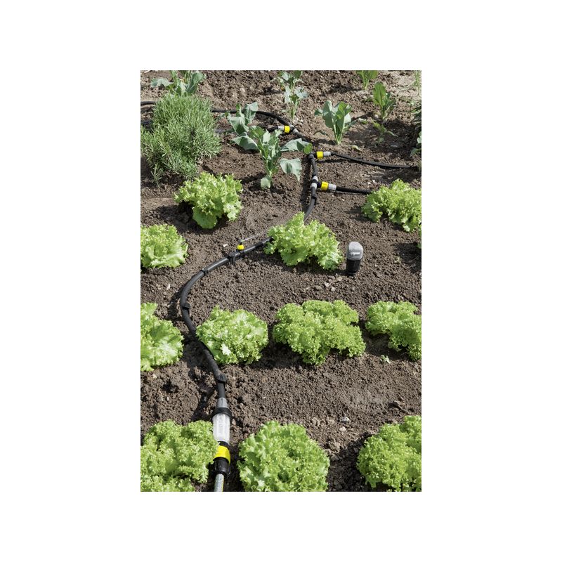 El filtro de partículas protege el sistema Rain System® de Kärcher frente a partículas de suciedad de forma fiable. El acoplamiento de filtro se puede desmontar y limpiar fácil y cómodamente.El filtro de partículas protege el sistema Rain System® de Kärcher frente a partículas de suciedad. El filtro se coloca en el extremo de la manguera de alimentación, en la conexión con el sistema Rain System® de Kärcher. El acoplamiento de filtro se puede desmontar y limpiar sin esfuerzo en cualquier momento. En el lado de entrada, se encuentra una conexión de grifos, que es compatible con todos los sistemas de acoplamiento conocidos. El lado de salida constituye la conexión para la manguera del sistema Rain System® de Kärcher o para la manguera de goteo. Las mangueras se conectan directamente con facilidad y se fijan con la ayuda de la tuerca racor sin necesidad de usar herramientas. El eficaz sistema de riego Rain System® de Kärcher combina las ventajas del Micro-Dripping con las del riego convencional. El sistema funciona con una presión de hasta 4 bar, puede adaptarse individualmentea casi todos los tipos de jardín y se combina perfectamente con SensoTimer™ para conseguir un control del riego en función de las necesidades.