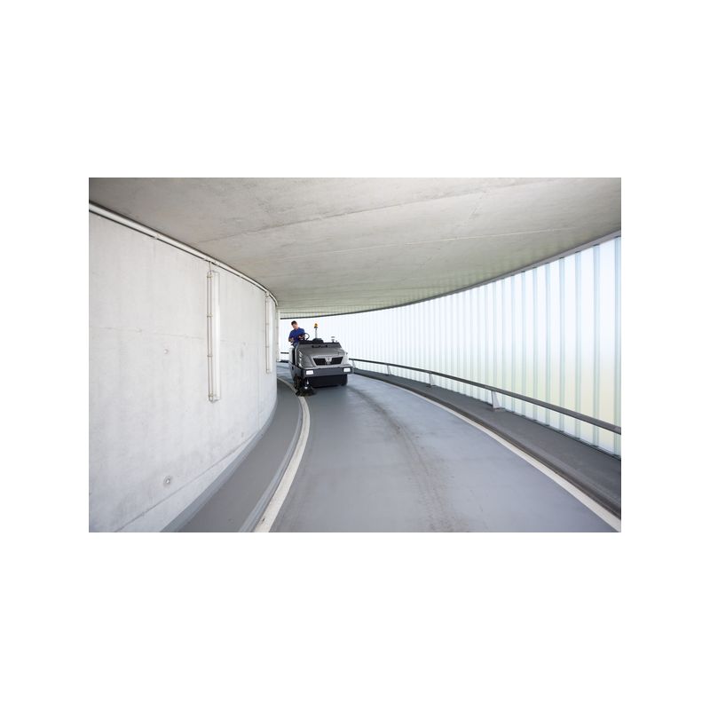 Barredora industrial totalmente hidráulica con diseño resistente para las aplicaciones más exigentes, por ejemplo, en la industria metalúrgica y de materiales de construcción, en fundiciones y otras industrias donde se genera mucha suciedad.La KM 150/500 R Bp a batería con dirección trasera de tres ruedas destaca por su sencillo manejo. Gracias al principio de recogedor, tanto la suciedad fina como la suciedad gruesa se recogen de forma segura. A la hora de transportar el equipo, el depósito de suciedad se cierra automáticamente. El cepillo cilíndrico de barrido se adapta automáticamente a las irregularidades y se puede cambiar rápidamente sin necesidad de herramientas. Dos filtros plegados planos horizontales proporcionan aire limpio incluso cuando se genera mucho polvo. La limpieza de los filtros se realiza con solo pulsar un botón mediante un sistema de rascado doble muy eficaz. Al filtro se puede acceder fácilmente y se puede cambiar sin herramientas. Gracias al concepto EASY Operation, las funciones básicas se pueden manejar mediante un solo botón giratorio.