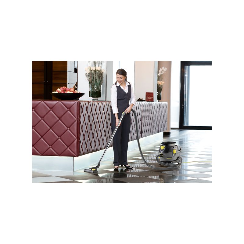 Con el aspirador en seco T 15/1 renovamos nuestra gama existente de aspiradores en seco industriales y volvemos a ocupar este importante segmento del mercado con un excelente modelo de alta gama.Este aspirador extraordinariamente silencioso combina la comodidad y ergonomía –con el alojamiento integrado para manguera, cable y accesorios, así como 2 posiciones de estacionamiento para la boquilla para suelos– con una destacada potencia de aspiración y un enorme radio de trabajo.