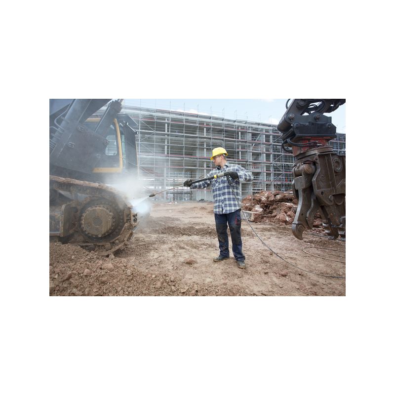 La pistola de alta presión EASY!Force pionera forma parte del equipamiento de serie de la limpiadora de alta presión con agua caliente HDS 1000 De. El bastidor estable está diseñado para el apilado con grúa o carretilla de horquilla elevadora.Gracias a su amplio equipamiento, al potente motor diésel de Yanmar y al bastidor tubular estable, nuestra limpiadora de alta presión con agua caliente HDS 1000 De convence allí donde otros equipos no pueden dar más de sí. Los componentes de alta calidad (por ejemplo, la bomba de alta presión con una culata de latón, válvulas de acero inoxidable y émbolos de acero inoxidable revestidos de cromo-níquel) aseguran una larga vida útil incluso en un uso continuo en condiciones muy duras. Nuestra nueva pistola de alta presión EASY!Force, que aprovecha la fuerza de retroceso del chorro de alta presión para reducir a cero la fuerza de retención, permite trabajar sin cansancio; mientras que nuestros cierres rápidos EASY!Lock facilitan el montaje y desmontaje: en comparación con las conexiones con rosca convencionales, este proceso es cinco veces más rápido, pero al fin y al cabo es igual de largavida útil y resistente. El amplio equipamiento de seguridad con depósito de flotador con protección integrada contra calcificación (DGT) —que asegura la separación de la red de agua potable—, varias válvulas de seguridad, sensor de nivel mínimo de llenado de combustible, aceite y agua, garantizan la disponibilidad del equipo en cualquier momento. Un bastidor robusto protege los componentes y facilita el transporte.