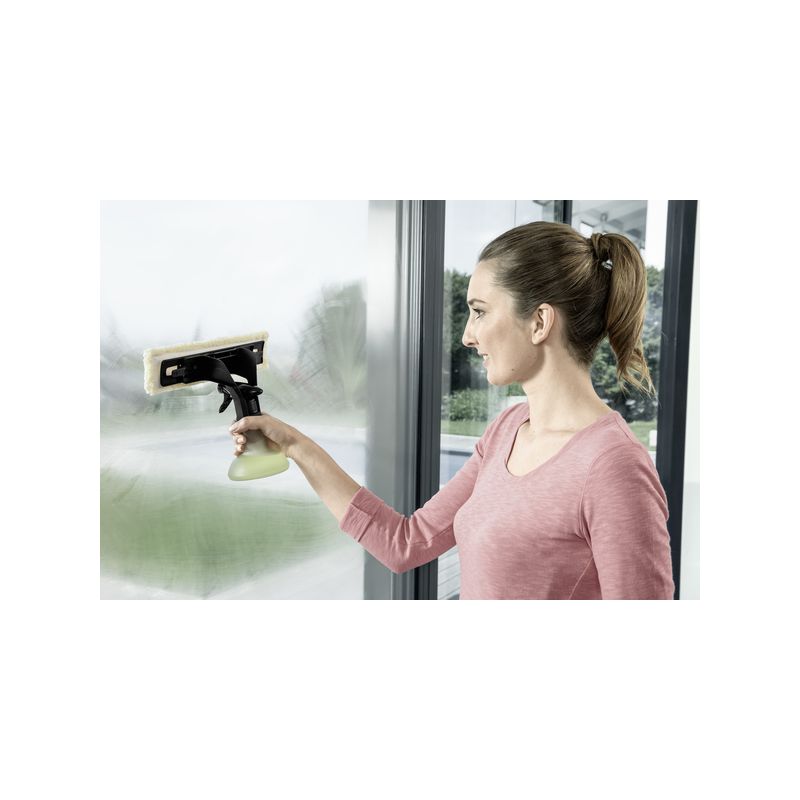 Con el nuevo kit de botella pulverizadora Premium con portacepillos de tamaño ajustable, se pueden limpiar de forma óptima tanto ventanas anchas como estrechas. Gracias al sistema con cinta de sujeción, el paño de microfibra puede fijarse de forma sencilla y cambiarse con rapidez. Además, con el rascador de suciedad podrá eliminar incluso la suciedad más resistente de los cristales.
