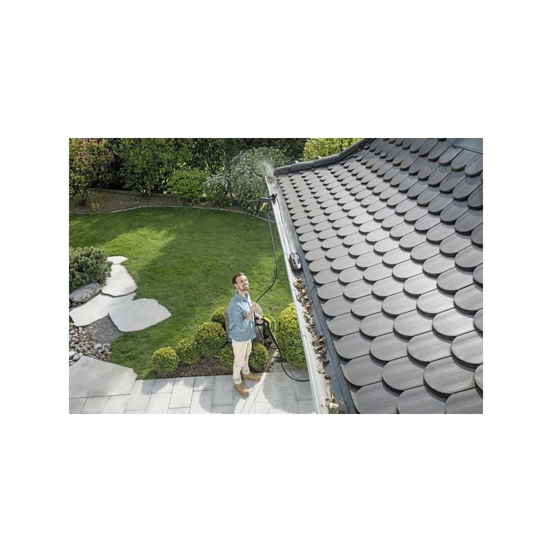 Inteligente solución 2 en 1 para limpiar canalones y tuberías embozadas o desagües. El innovador juego para la limpieza de canalones y tuberías de Kärcher funciona por sí solo: con alta presión. Se mueve de forma autónoma sobre un carro por el canalón, sin que el usuario tenga que estar permanentemente controlando sobre una escalera. El juego para la limpieza de canalones y tuberías está equipado con dos boquillas diferentes: una boquilla para la limpieza de tuberías con cuatro chorros de alta presión orientados hacia atrás y una boquilla para la limpieza de canalones para el montaje de la manguera sobre el carro. En todo momento, se puede cambiar sin problemas entre una aplicación y otra. Una protección contra flexiones y una conexión de latón garantizan una larga vida útil. La longitud de la manguera es de 20 m. El juego para la limpieza de canalones y tuberías es adecuado para las limpiadoras de alta presión Consumer de Kärcher de las clases K2-K7.
