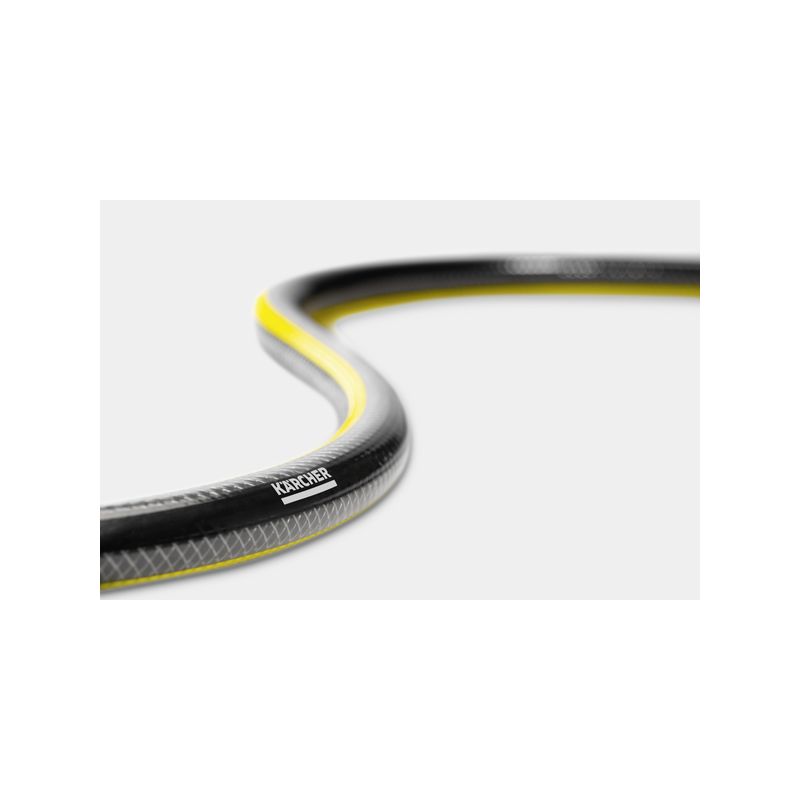Manguera de riego de alta calidad de Kärcher: la nueva Performance Plus 5/8" con una longitud de 25 m garantiza un caudal permanente de agua, gracias a su flexibilidad y resistencia a torsiones. Presión de estallido de 40 bares.Un verdadero equipo de riego: la manguera de riego de alta calidad Performance Plus 5/8" de 25 metros de largo es ideal para el riego de superficies y jardines de tamaño pequeño y mediano. Fabricada con tejido multicapa de alta calidad con tacto mejorado: la capa exterior anti-UV resistente a la intemperie protege el material y la capa intermedia opaca impide la formación de algas en la manguera. Además, la manguera resulta más agradable al tacto y es especialmente robusta, flexible y resistente a torsiones, lo cual garantiza un caudal permanente de agua. Incluso las temperaturas entre -20 y +60 °C no representan ningún impedimento para esta manguera de alta calidad. Su presión de estallido es de 40 bar. Esta manguera también es sostenible y no representa ningún riesgo para la salud porque no contiene ftalatos (< 0,1 %), cadmio, bario ni plomo. Esta manguera de riego dispone de 15 años de garantía.