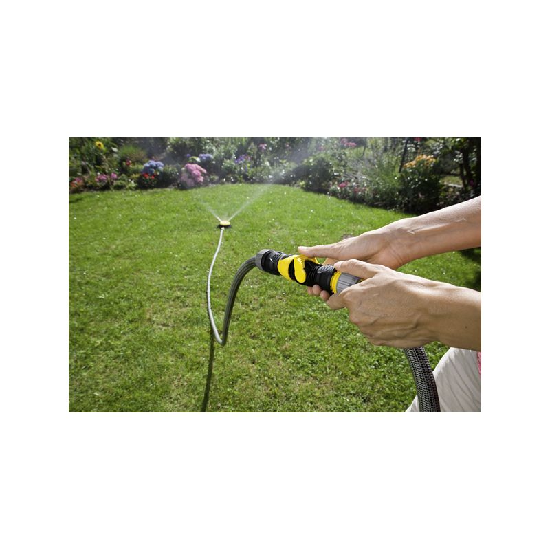 Válvula de control para la colocación entre la manguera y el aspersor. Para la regulación en continuo del caudal del agua desde 0 hasta el máximo. Incluido conector de dos vías para la conexión de dos mangueras.Unas conexiones de grifo, unos conectores de manguera y unas mangueras en perfecto estado son la base para un riego eficiente. Por eso, Kärcher ofrece una gama completa de accesorios para acoplar, desacoplar, regular y reparar sistemas de riego. Por ejemplo, la válvula de control de Kärcher: la solución ideal para la regulación del caudal del agua desde 0 hasta el máximo. Destaca por su diseño ergonómico y garantiza un manejo sencillo. La válvula de control puede emplearse bien para la conexión entre la manguera y el aspersor o bien, con ayuda del conector de dos vías adjunto, para la conexión de dos mangueras. La válvula de control de Kärcher es compatible con todos los sistemas Click disponibles y con todos los diámetros de manguera más habituales.