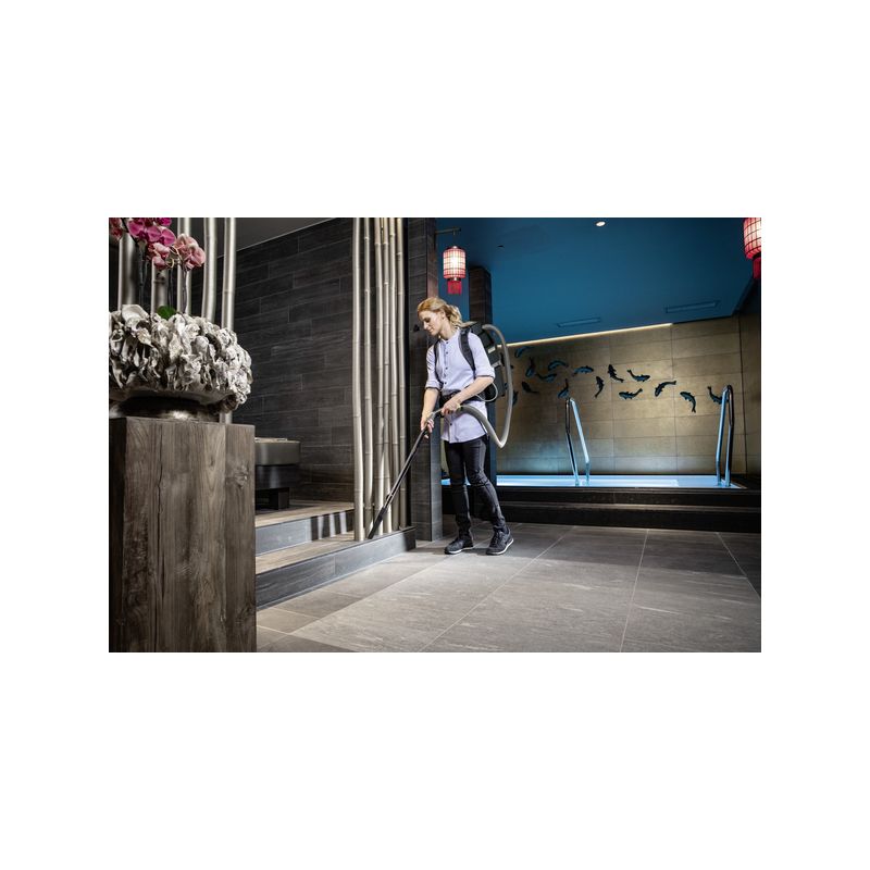 Ideal para la limpieza en espacios estrechos: el potente y ultraligero aspirador mochila a baterías BVL 5/1 Bp Pack, fabricado en el innovador material EPP especialmente resistente.Nuestro potente y ultraligero aspirador mochila a baterías BVL 5/1 Bp Pack es el primer aspirador que, gracias al innovador material EPP, pesa solo < 4,6 kg (peso a la espalda) y cuyas propiedades de material proporcionan al mismo tiempo una gran resistencia y durabilidad. Ya sea en cines, aviones, autobuses, trenes, durante la limpieza de oficinas o incluso en escaleras, el potente aspirador mochila con un volumen del depósito de 5 litros muestra todo su potencial con los trabajos de limpieza en espacios estrechos. Asimismo, la potente batería Kärcher Battery Power+ proporciona una gran autonomía y una potencia de 500 vatios del accionamiento EC sin escobillas de bajo desgaste. El bastidor ergonómico del aspirador mochila garantiza el trabajo sin esfuerzo. Gracias al práctico panel de control en el arnés de cintura para el control de todas las funciones importantes de servicio y adicionales, el BVL 5/1 Bp Pack se puede manejar sin esfuerzo y de manera sencilla para el usuario. Se incluyen de serie varios accesorios, la potente batería Kärcher Battery Power+, el cargador rápido correspondiente y una bolsa de filtro de fieltro resistente a las roturas. Opcionalmente, se incluye también un filtro HEPA 14 de alta eficacia.
