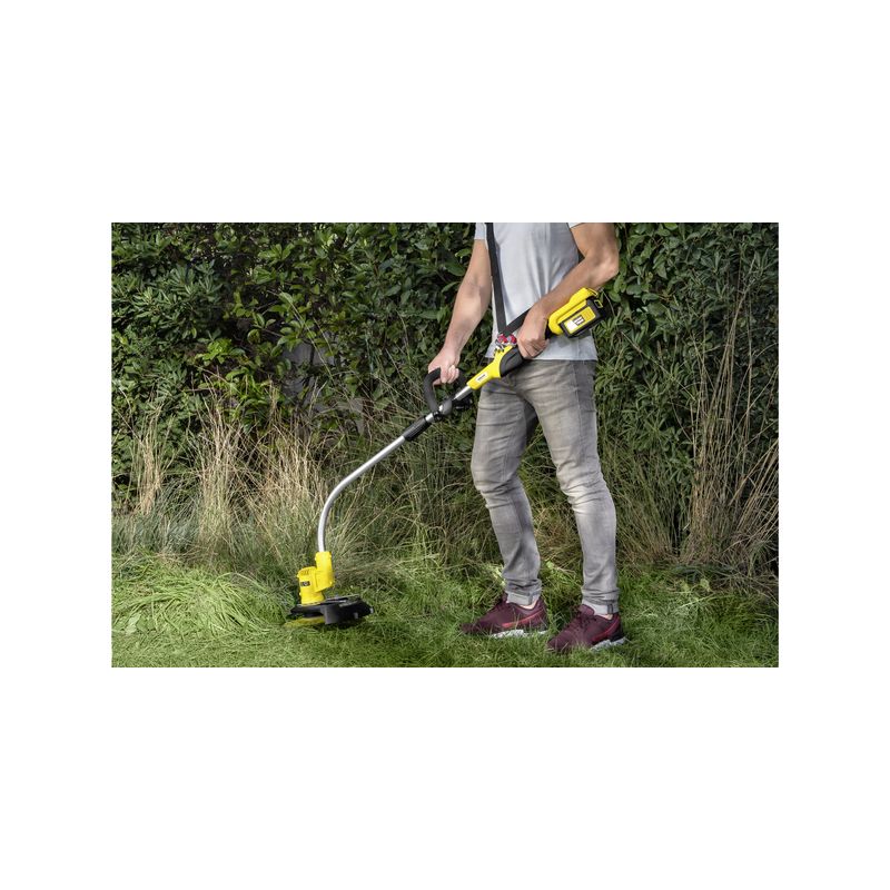 Todos los jardines tienen rincones ingratos a los que es difícil llegar con el cortacésped o que presentan obstáculos, como un muro adyacente o un arbusto. Para trabajar en estos rincones sinuosos hace falta un equipo pequeño, flexible y, por supuesto, potente: una podadora de Kärcher. Esta contiene un hilo de corte girado que se reajusta constantemente mediante la alimentación automática del hilo en el carrete. Así, el hilo siempre tiene la longitud perfecta en cada corte y se garantizan unos resultados limpios. Cuando se gasta el hilo, se puede sustituir el carrete en pocos pasos, sin necesidad de utilizar herramientas. Y ya se puede seguir en busca de la última brizna de hierba.
