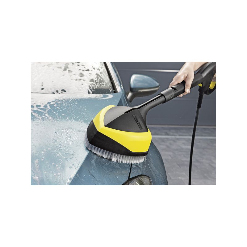 El Power Brush WB 150 es ideal para la limpieza sin salpicaduras de superficies delicadas, como pintura de vehículos o motocicletas, vidrio, invernaderos, puertas de garajes, persianas, persianas enrollables, muebles de jardín, bicicletas, etc. El innovador cepillo de lavado con dos boquillas giratorias de chorro concentrado combina la máxima potencia con la fuerza protectora. Pues la nueva limpiadora de superficies con cepillo de lavado blando convence por su modo de trabajo eficaz por chorro de alta presión y presión del cepillo manual. El resultado del trabajo con el Power Brush es un evidente ahorro de agua y energía, así como hasta el 30 % de ahorro de tiempo. La limpieza rápida, eficaz y sin esfuerzo mediante alta presión en conjunción con un cepillo proporciona una limpieza aún mayor en la casa y el jardín. Apto para todas las limpiadoras de alta presión de Kärcher de las clases K2 a K7.