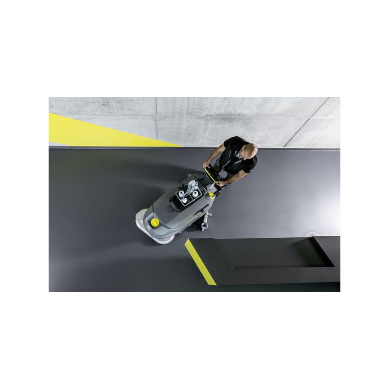 Fregadora-aspiradora con acompañante BD 70/75 W Classic Bp con depósito de 75 litros y cabezal de cepillos de doble disco. Muy fácil de manejar y apta para una gran diversidad de usos.Concepto sencillo, manejo sencillo, mantenimiento sencillo: nuestra fregadora-aspiradora con acompañante con funcionamiento por baterías BD 70/75 W Classic Bp destaca por su gran facilidad de uso y su excelente rendimiento de limpieza gracias al cabezal de cepillos de doble disco con presión de apriete de cepillos regulable y a la tobera de aluminio. Además, este equipo robusto y extremadamente compacto se caracteriza por un manejo muy sencillo y una gran versatilidad de uso. Con un volumen de depósito de 75 litros, permite realizar fácilmente trabajos de larga duración.