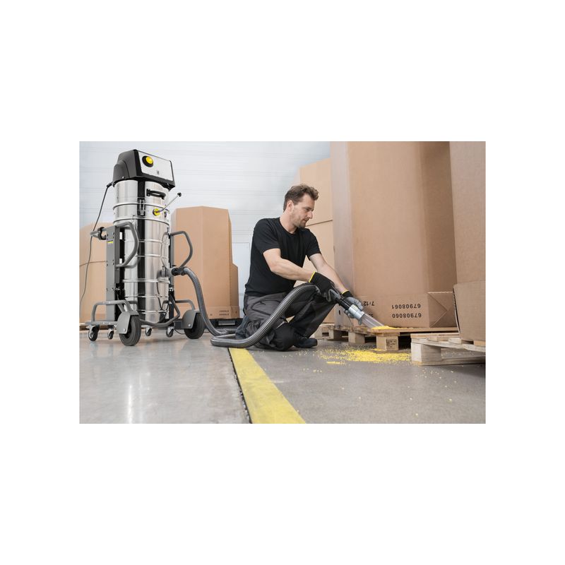 Robusto aspirador industrial de gama media IVM 60/30 con compresor de canal lateral de larga vida útil y gran filtro de estrella de la categoría de polvo M. Apto para la eliminación de sólidos finos y gruesos.Un compresor de canal lateral de larga vida útil con modo trifásico, el gran filtro de estrella de la categoría de polvo M y la cómoda limpieza manual del filtro con transmisión se incluyen entre los más importantes valores internos de nuestro aspirador industrial de gama media IVM 60/30. Desde un punto de vista puramente externo, este robusto equipo destaca por su sólida carcasa de acero inoxidable, cuerpo y depósito resistentes a los ácidos y grandes ruedas para un transporte sencillo y una movilidad segura. En entornos industriales, el aspirador ofrece un uso prácticamente universal para la eliminación de sólidos finos y gruesos, en caso necesario también en servicio de tres turnos.