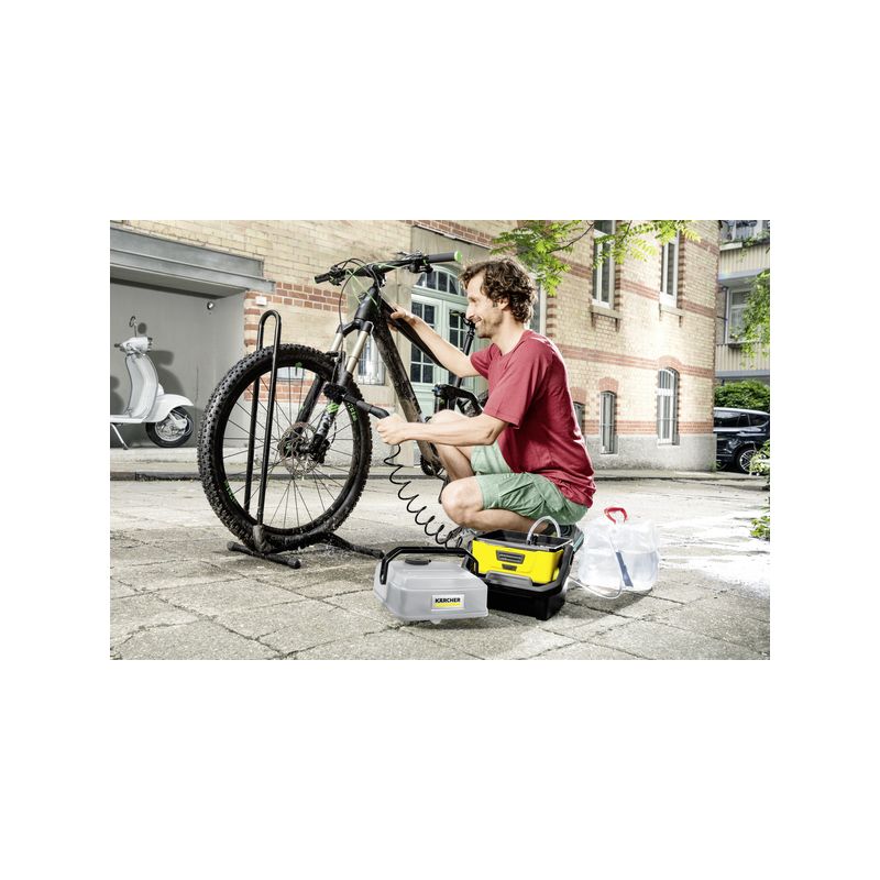 Perfecta para cuando se sale de viaje con frecuencia: la caja de accesorios Adventure con accesorios específicos para limpiar el equipamiento de actividades al aire libre en cualquier lugar. El cepillo universal, que puede conectarse a la pistola, desprende la suciedad resistente con los cepillos blandos y la arrastra. Gracias a la manguera de aspiración pueden utilizarse fuentes de agua alternativas como pozos o bidones. Por último, los accesorios se pueden almacenar en la práctica caja colocada en la limpiadora de presión.